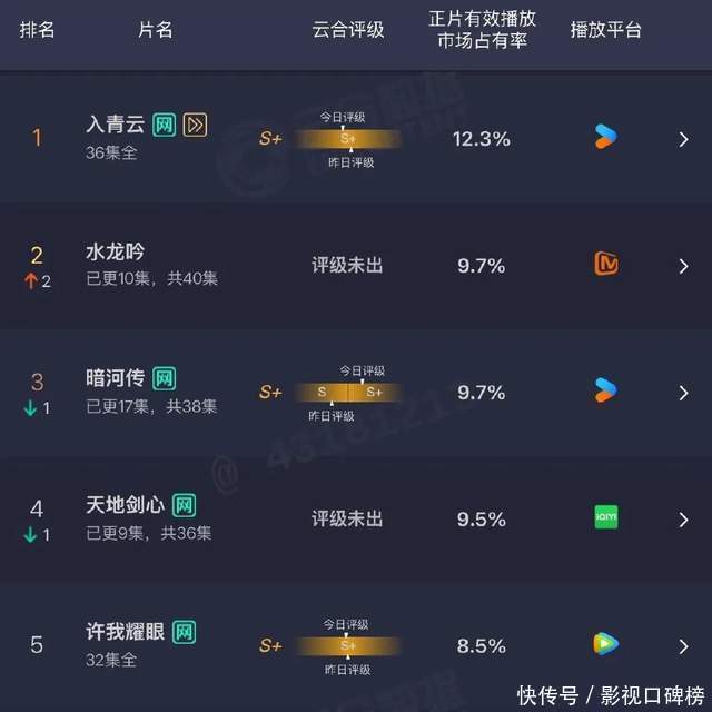 现在的进阶比拼就是看广告数据,《水龙吟》首集11个广告,但《暗河传》有16个合作品牌,统计学的魅力在此刻体现。
